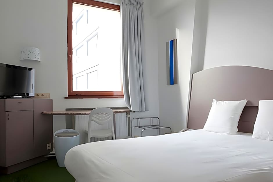 This tower room is spacious with lots of natural light and a view of Place Rogier.